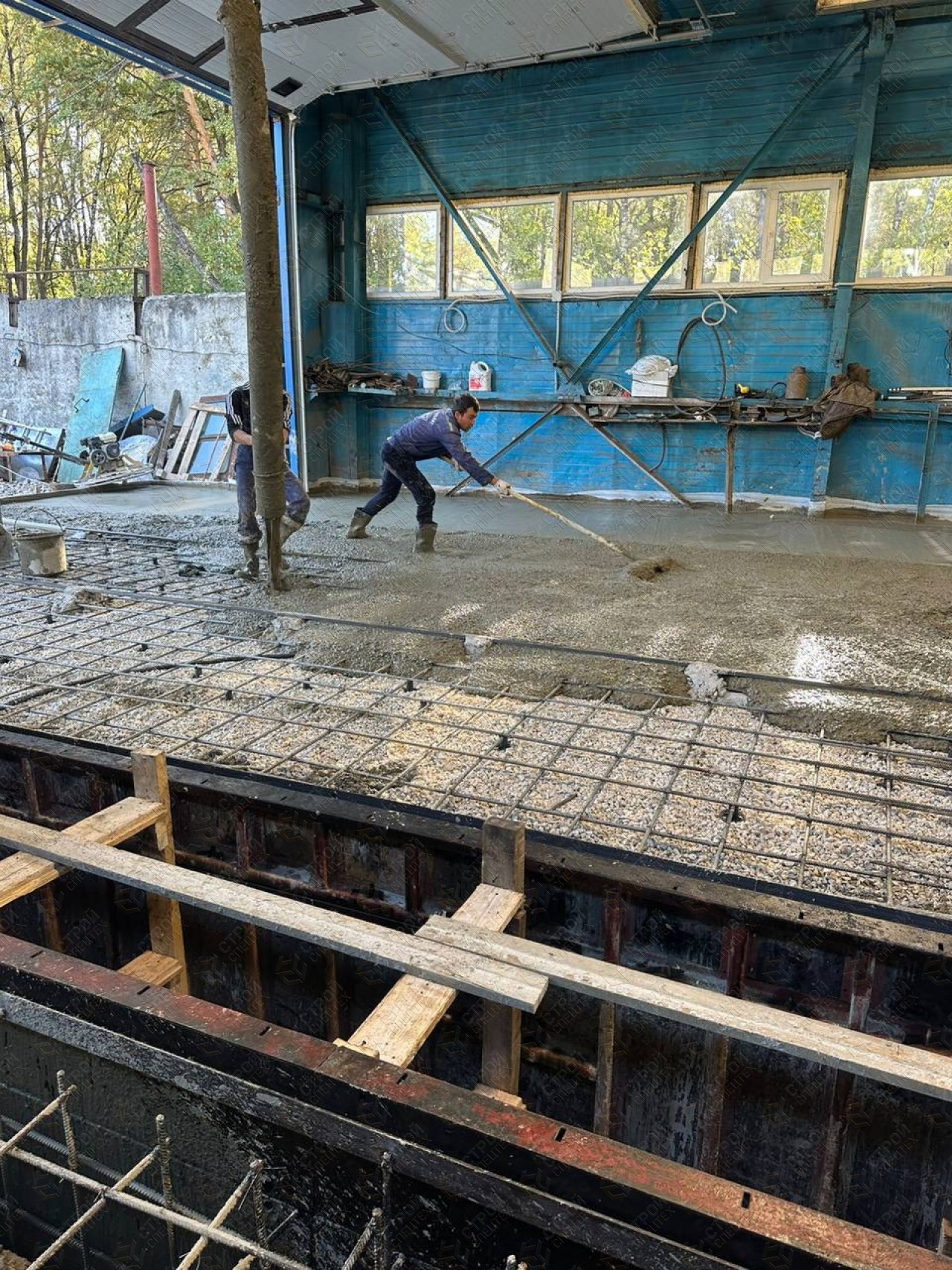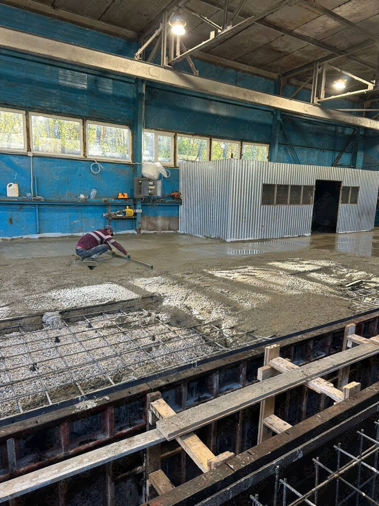 Задача: Для обеспечения бесперебойной работы и качественного обслуживания строительной и коммунальной техники требовалось обустроить надежное покрытие сервисной зоны. Ключевым требованием было устройство монолитных полов повышенной износостойкости с интегрированной смотровой ямой для ремонта машин и спецтехники.